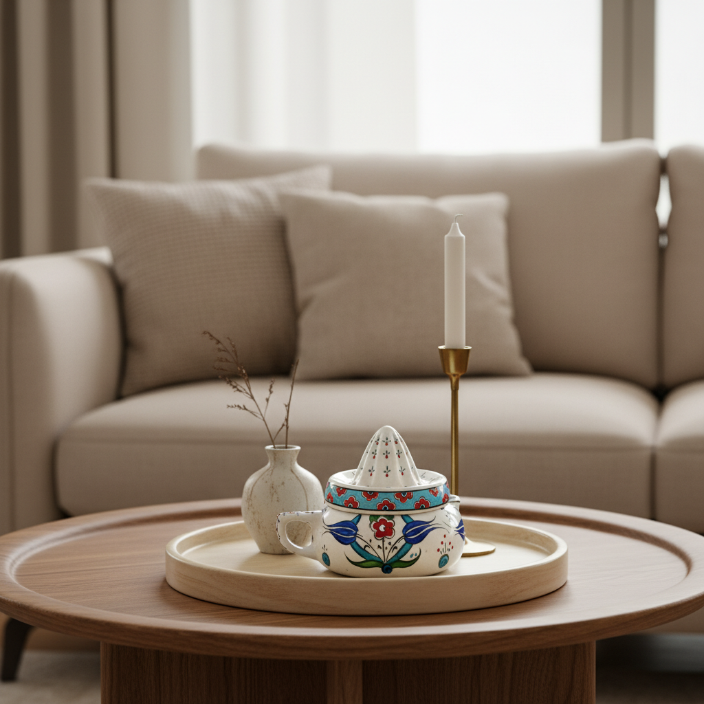 Why It’s a Collector’s Piece: Instead of being hidden in a drawer, this piece is meant to be displayed. The vibrant Iznik Tulip patterns wrap around the curve of the bowl and the spout, making it beautiful from every angle. It evokes the feeling of a slow, sunny morning in a Turkish garden.