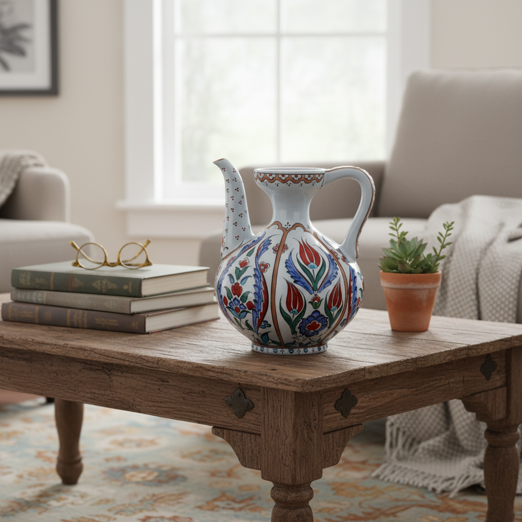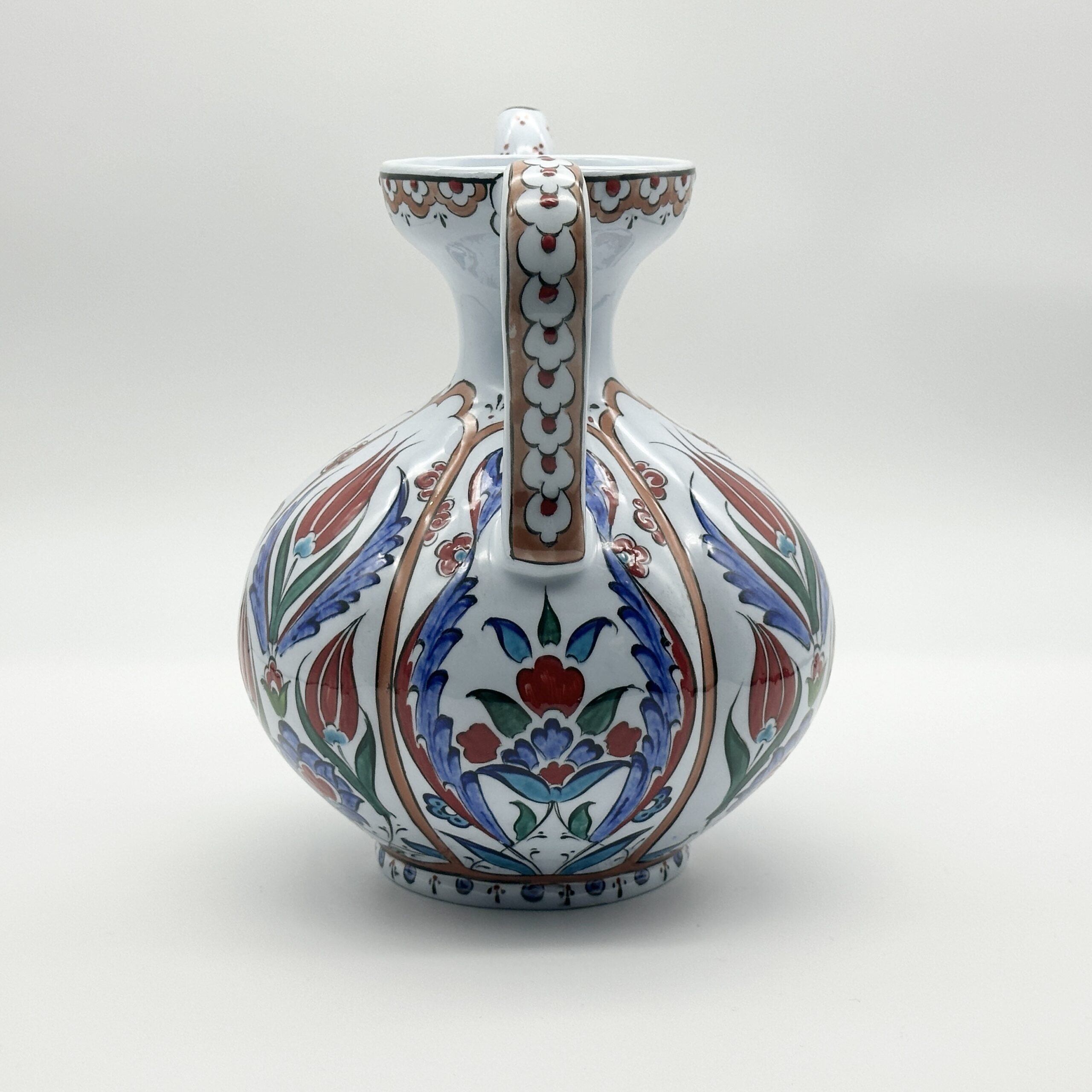 Handmade Ceramic Pitcher Vase (20cm) Traditional Turkish Carnation Pattern with Handle – Decorative Jug Art Decor