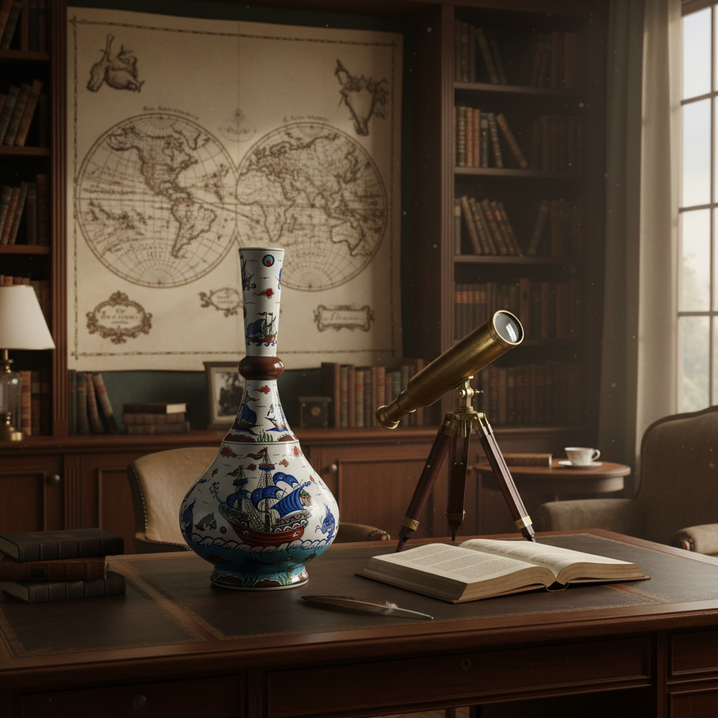 Architectural Character The vase’s form is as strong as its message. The slender neck is interrupted by a bold boss (knob), glazed in a distinctive earth tone. This detail gives the vase a masculine, historic elegance, reminiscent of the metal flasks used by sailors and sultans alike.