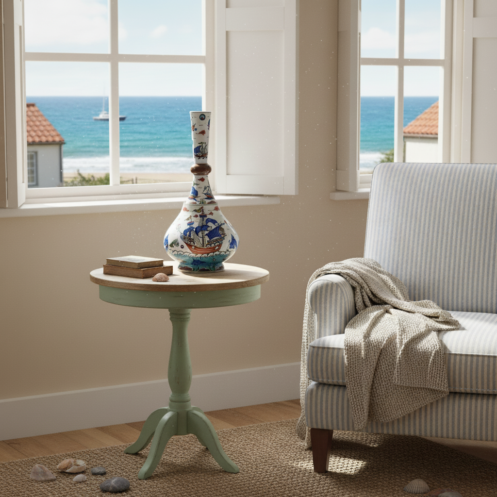 Bring the adventure and symbolism of the high seas into your home with this Handmade Ceramic Galleon Vase. Standing at 45 cm, this piece is a narrative of exploration, capturing the Golden Age of Ottoman navigation.