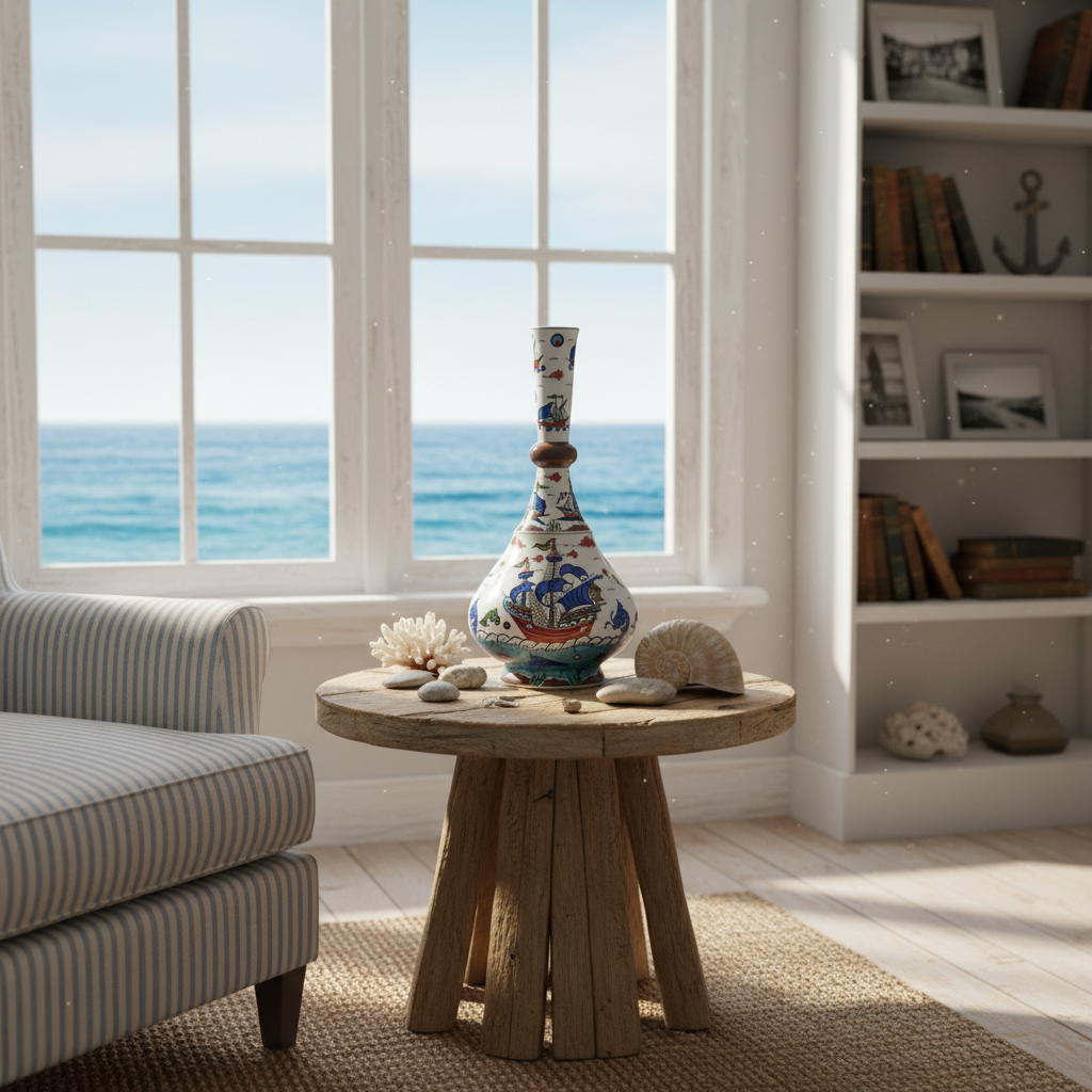 Handmade Ceramic “Galleon” Vase (45cm) – Ottoman Ships & Waves – Symbol of Journey & Abundance