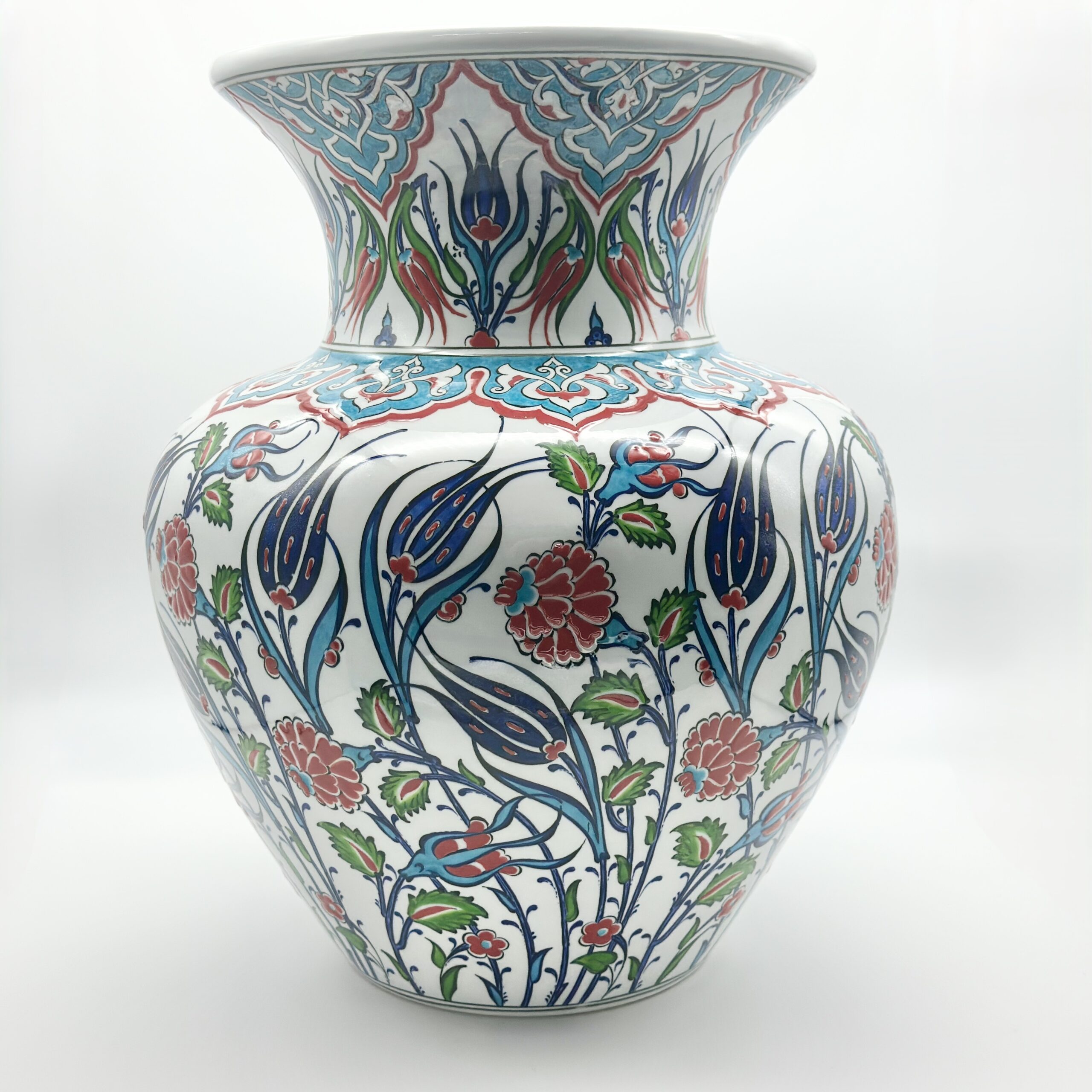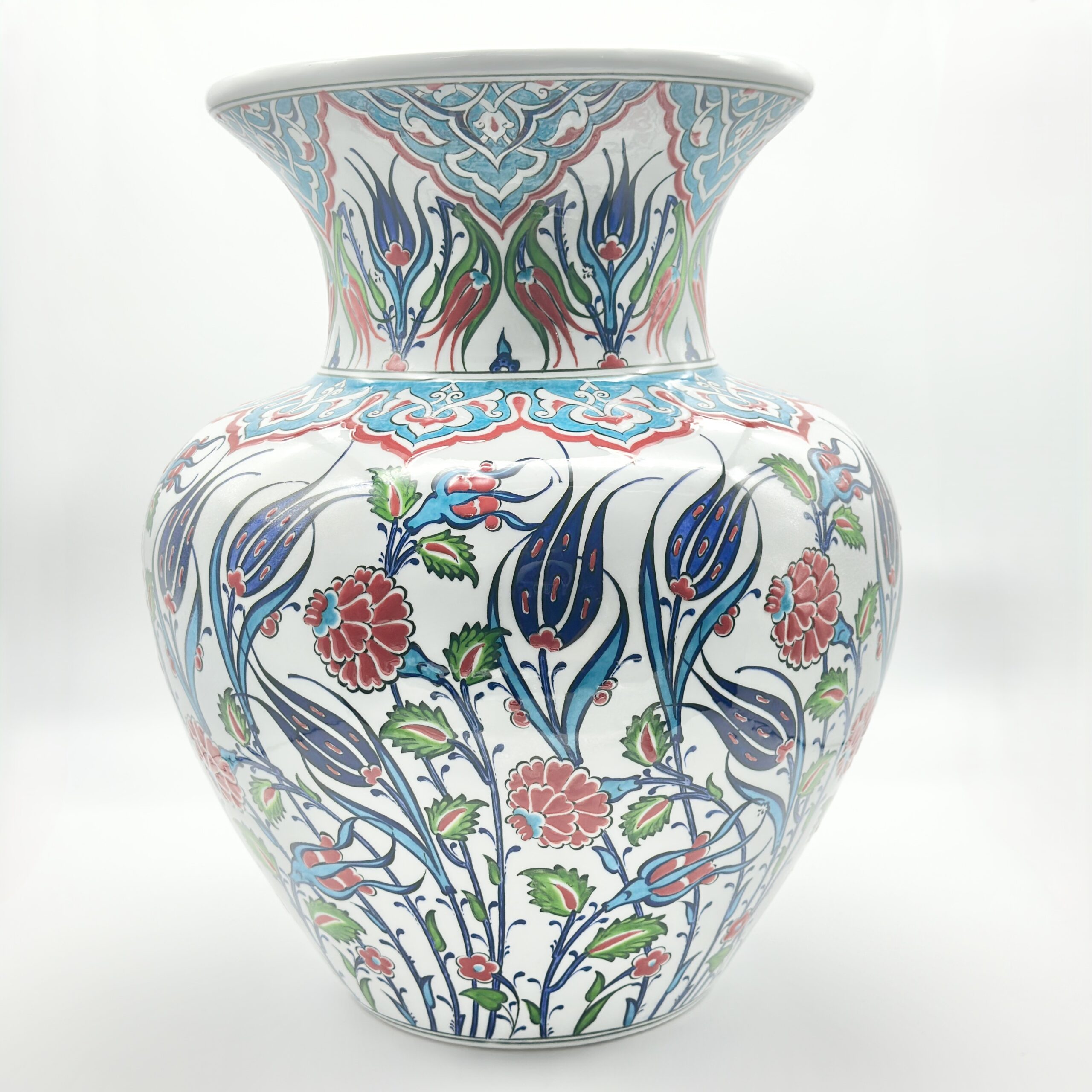 Handmade Ceramic Vase (30cm) Traditional Turkish Carnation & Tulip Pattern – Classic Flared Neck Decor