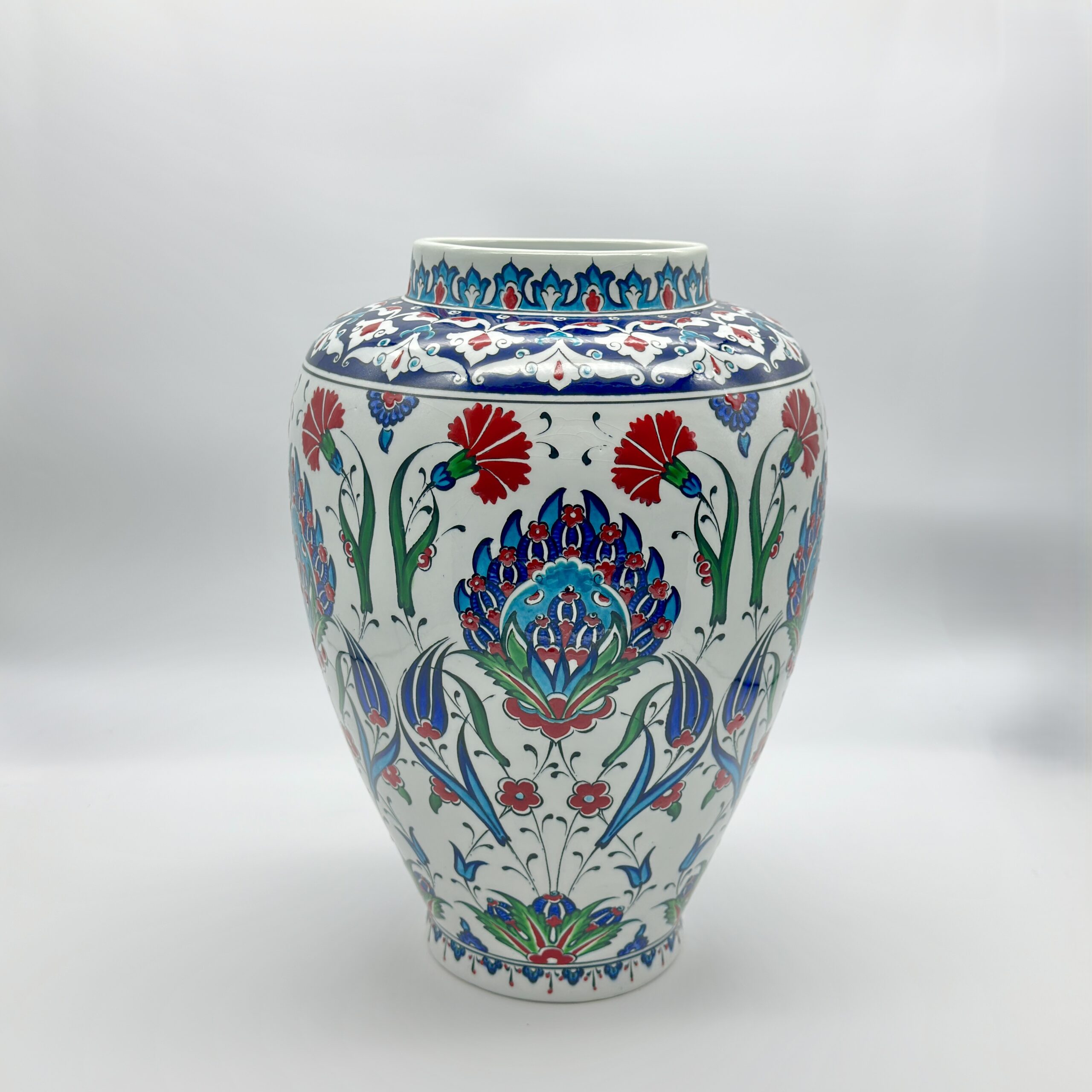 Handmade Ceramic Vase (30cm) Traditional Turkish Carnation & Tulip Pattern – Classic Flared Neck Decor