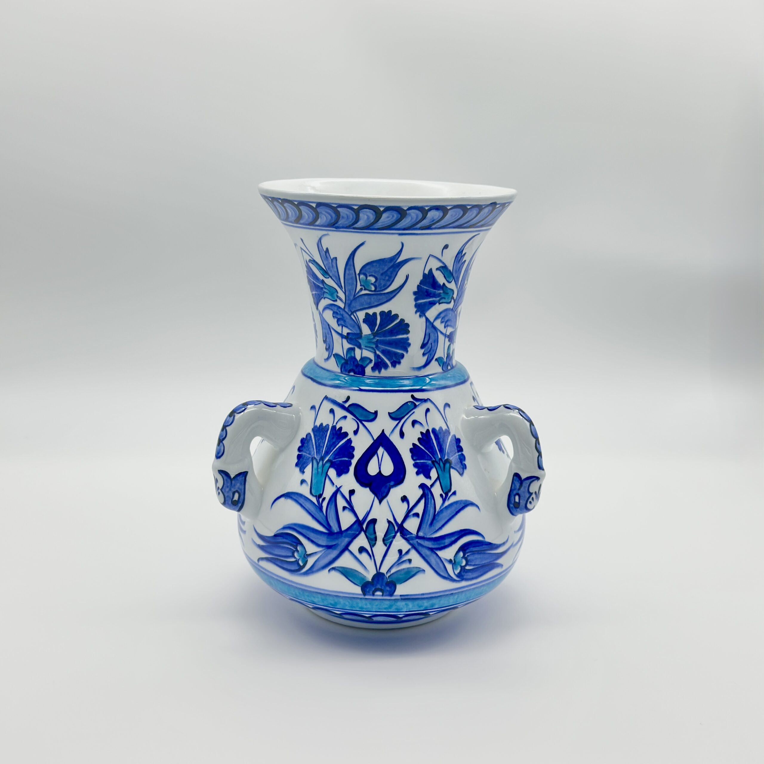 Handmade Ceramic Vase (30cm) Traditional Turkish Carnation & Tulip Pattern – Classic Flared Neck Decor