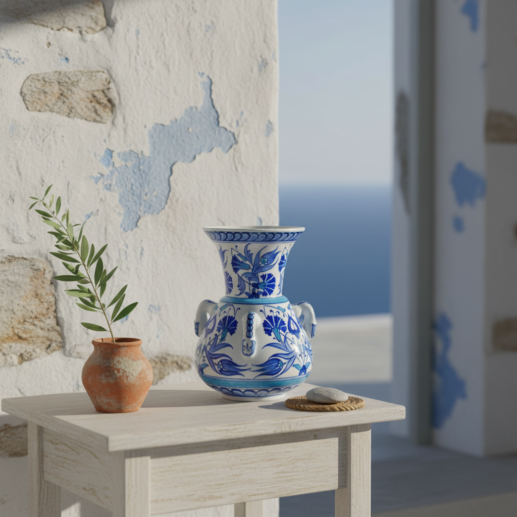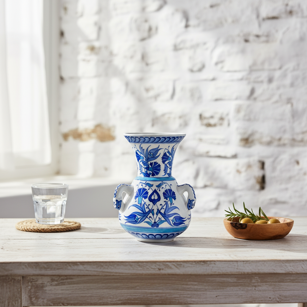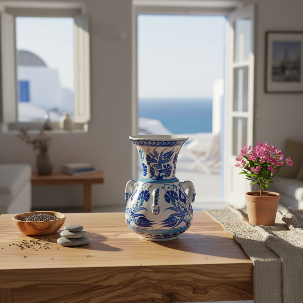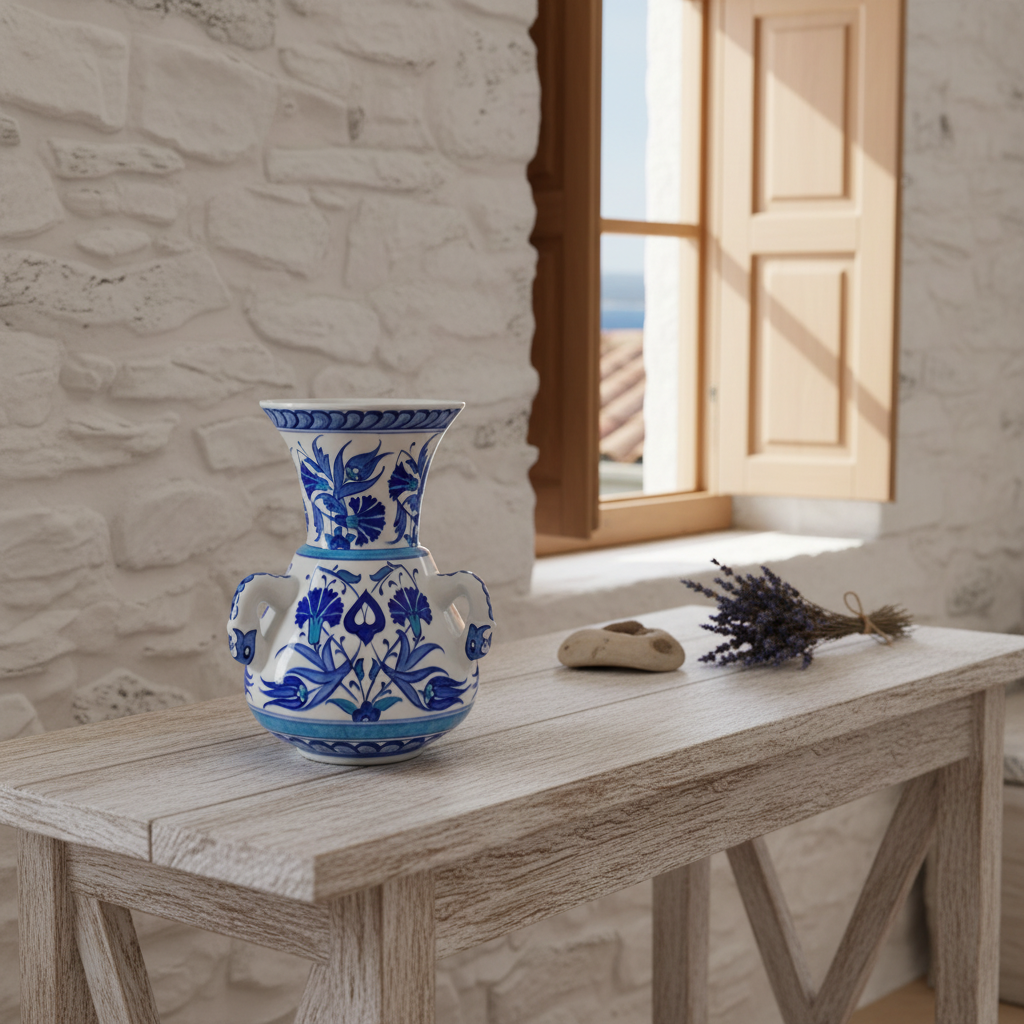 This Handmade Ceramic Kandil Vase brings the serenity of the Aegean into your home. Standing at 20 cm, it captures the architectural majesty of the historic “Kandil” form in a size you can hold in your hands.