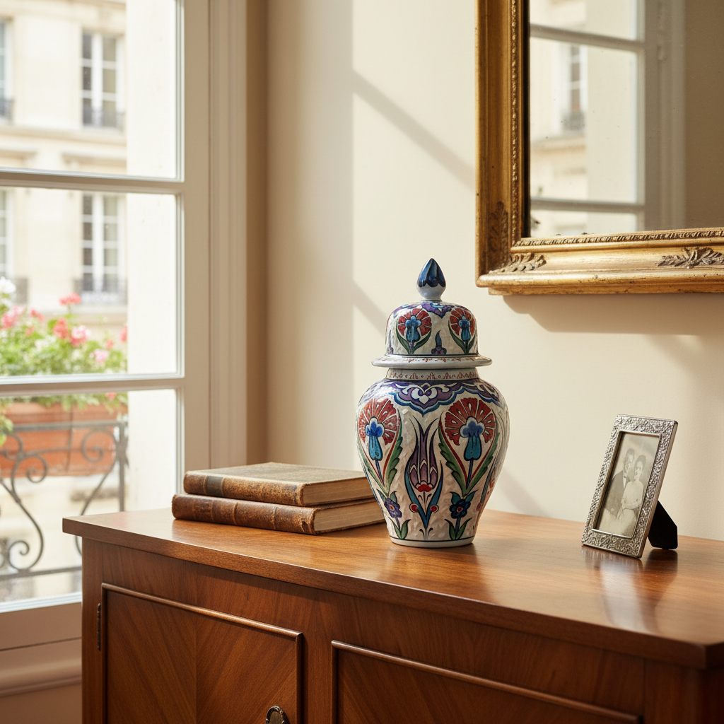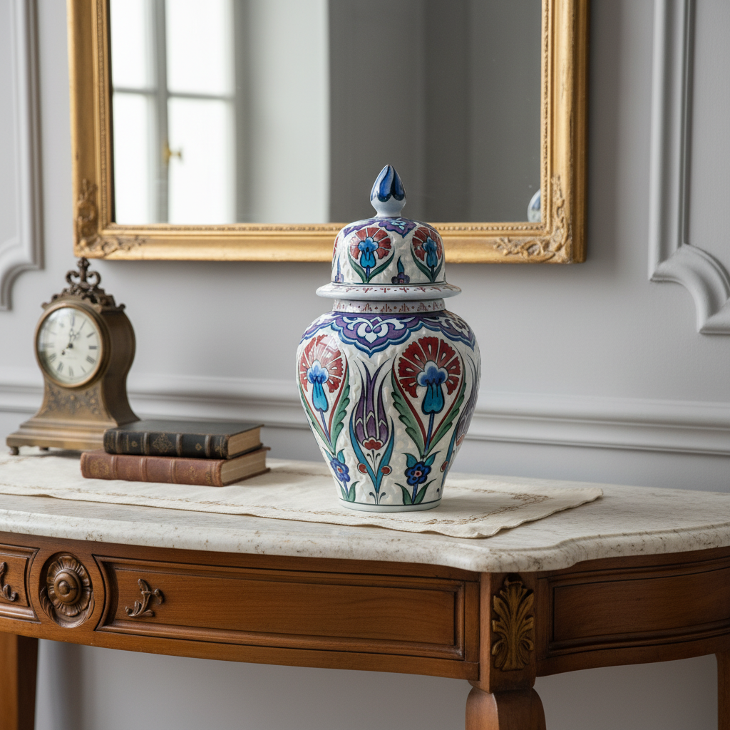 Handmade Ceramic Urn Vase (25cm) Vibrant Multi-Color Iznik Floral Garden Pattern – Traditional Turkish Decor