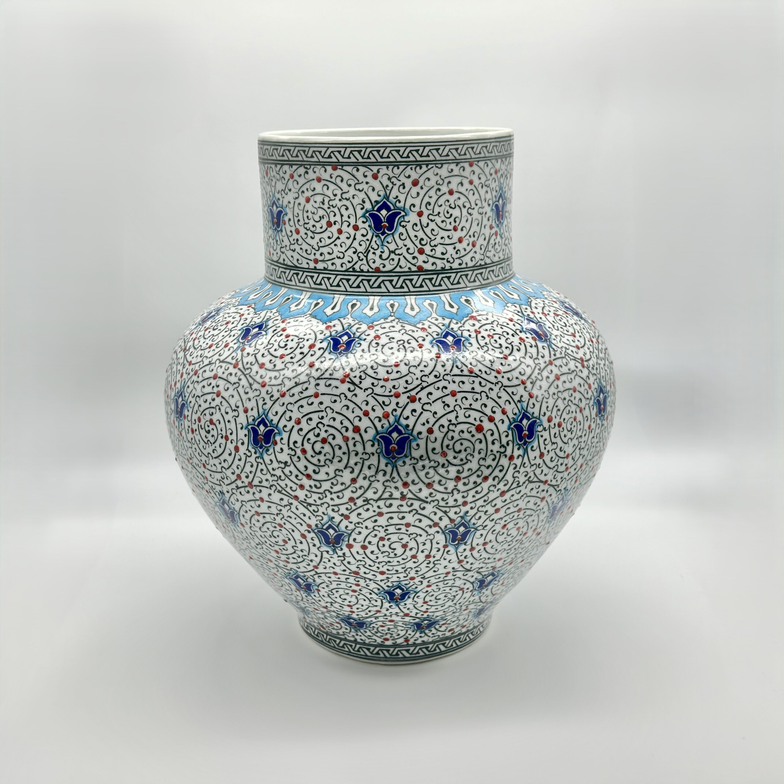 Handmade Ceramic Large Iznik Vase Monumental Size Golden Horn (Halic) Style Scroll Pattern
