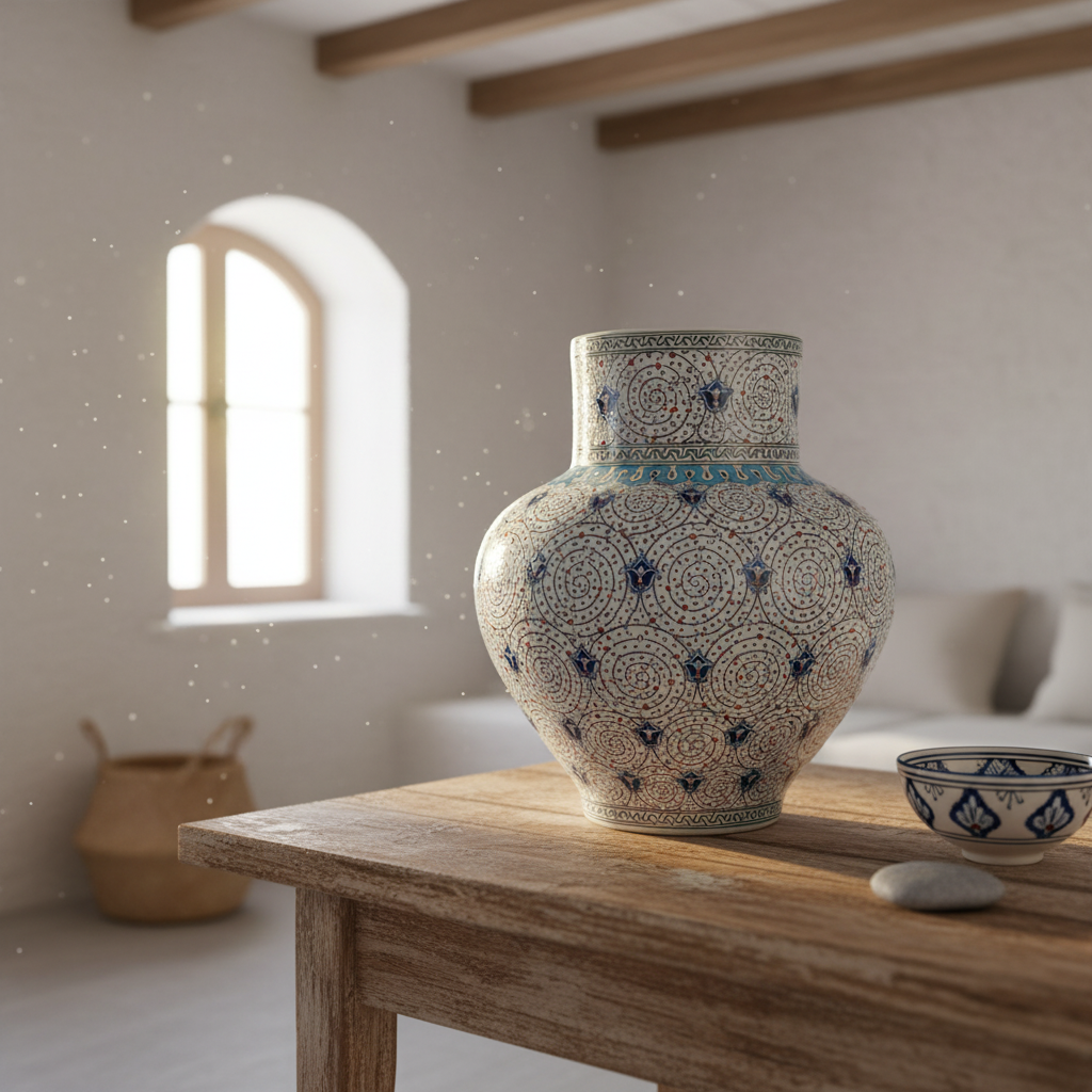 ⚠️ Uniqueness Guarantee: The density of the spirals and the flow of the hand painted lines are unique to the artist’s hand. No two “Halic” vases are ever identical in their rhythm.