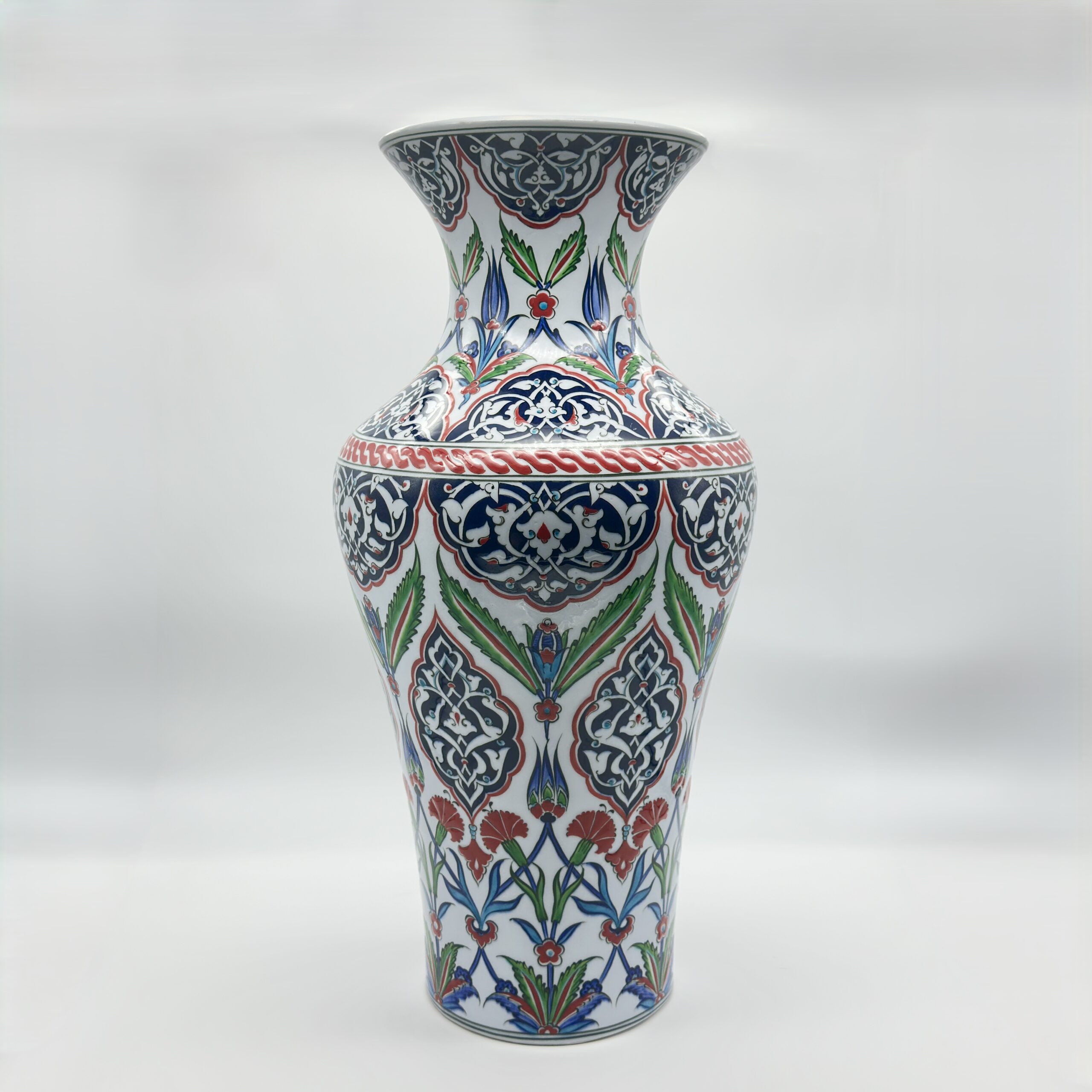 Handmade Ceramic Monumental Floor Vase (50cm) – Elaborate Ottoman Medallion Pattern – Grand Statement Decor