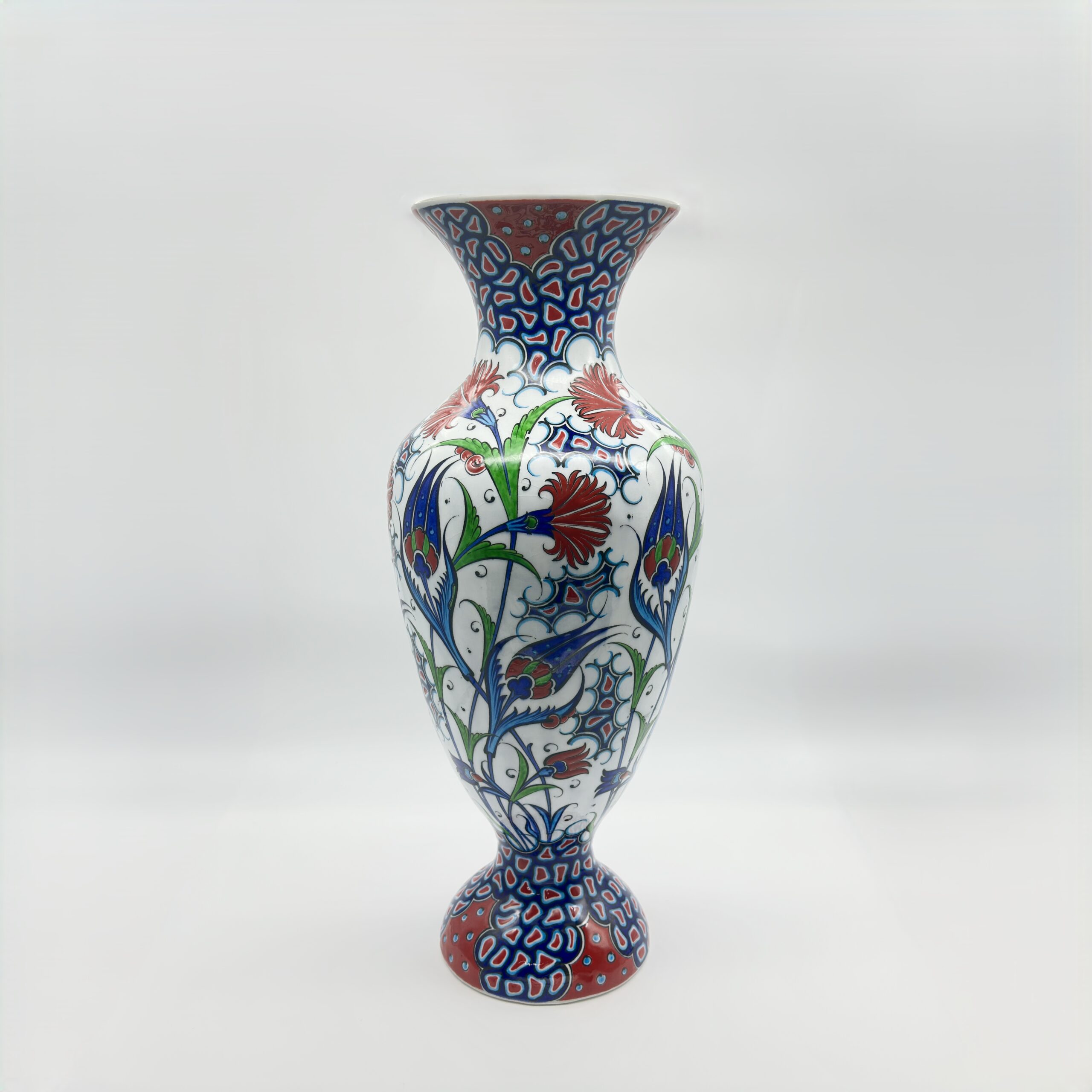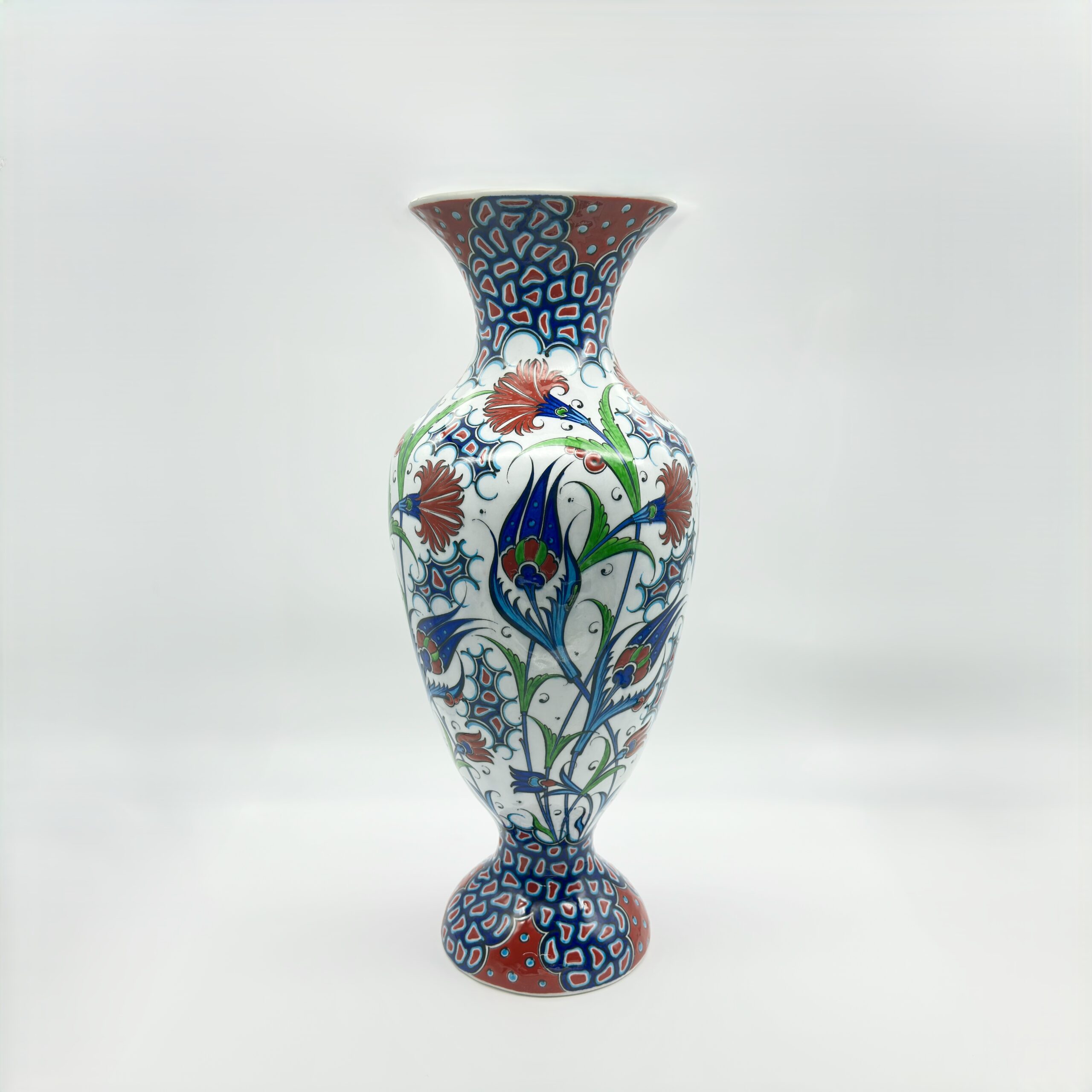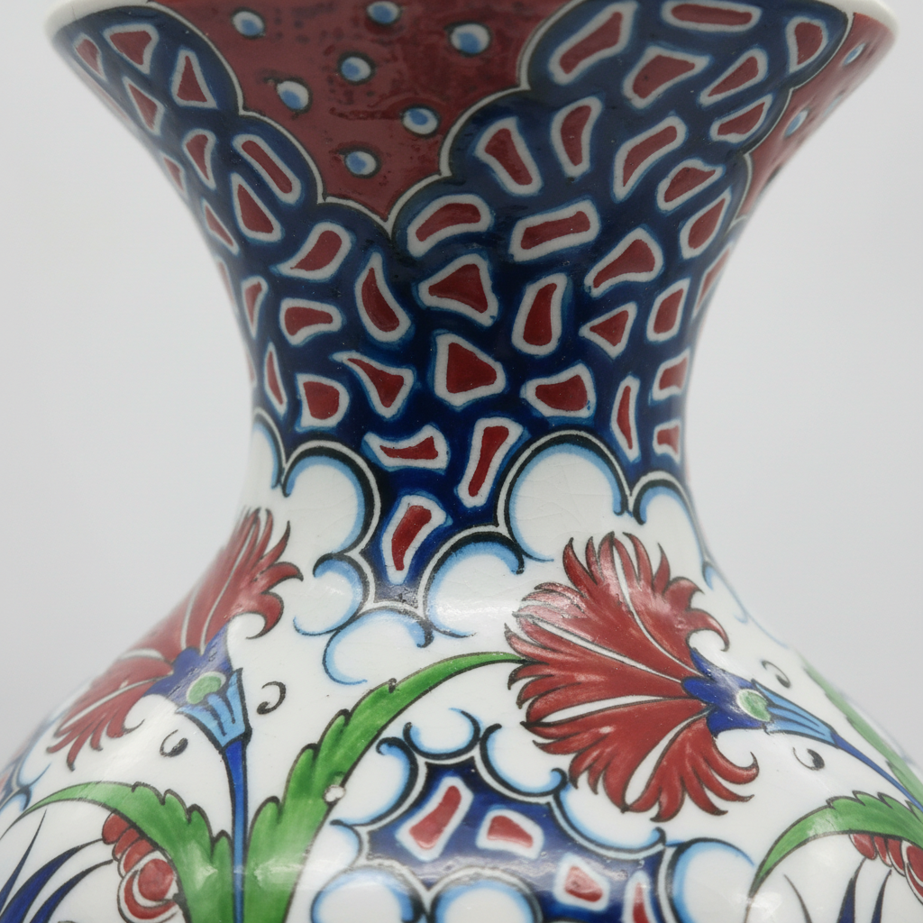 Handmade Ceramic Vase (30cm) Traditional Turkish Carnation & Tulip Pattern – Classic Flared Neck Decor