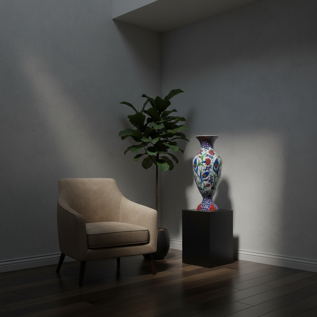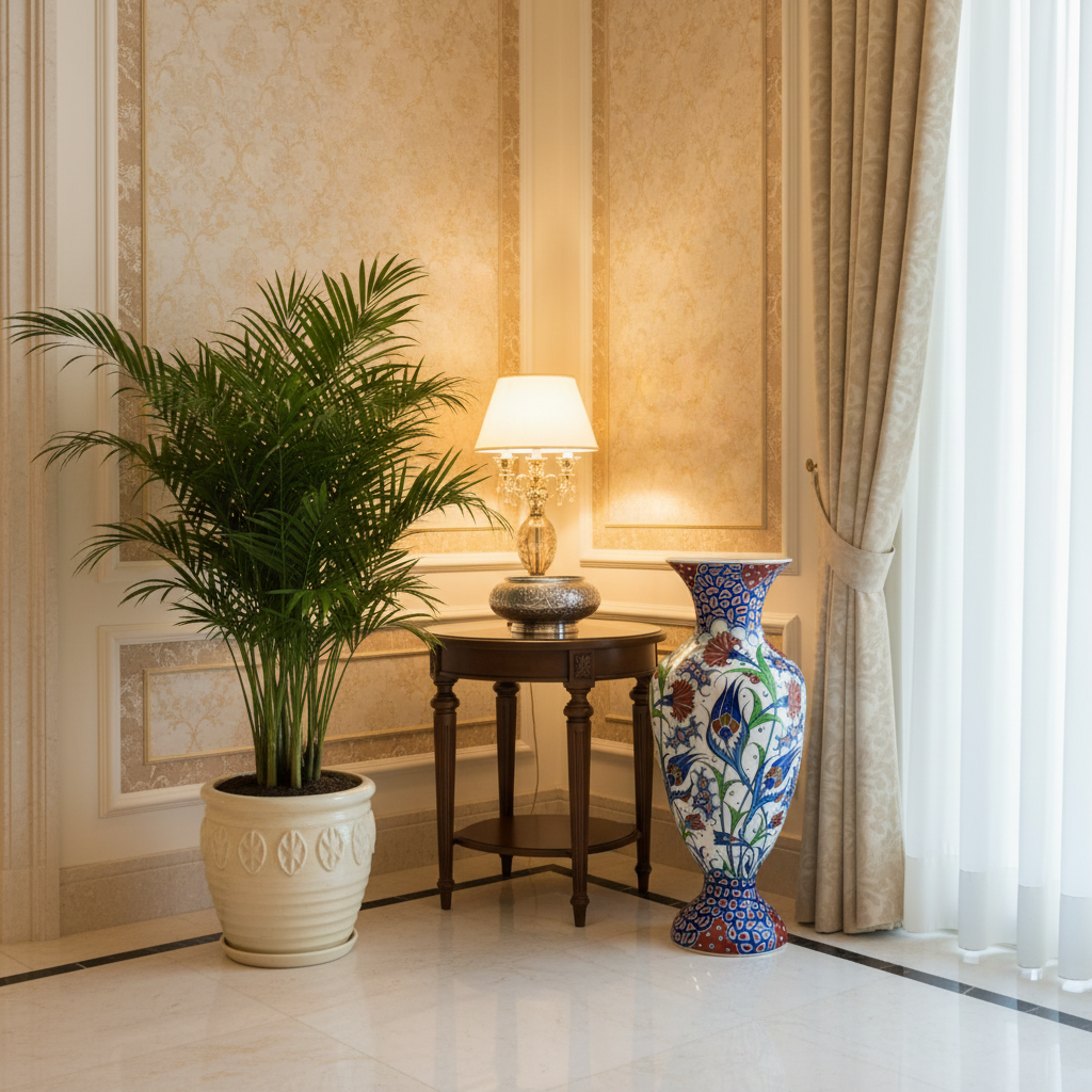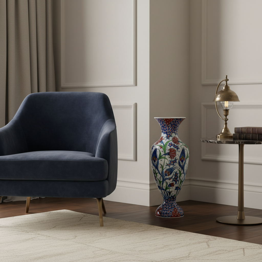 This Handmade Ceramic Palace Vase is a monumental fusion of geometry and nature. Standing at a majestic 50 cm, the “Saray” form commands attention in any room, serving as the ultimate focal point of luxury decoration.