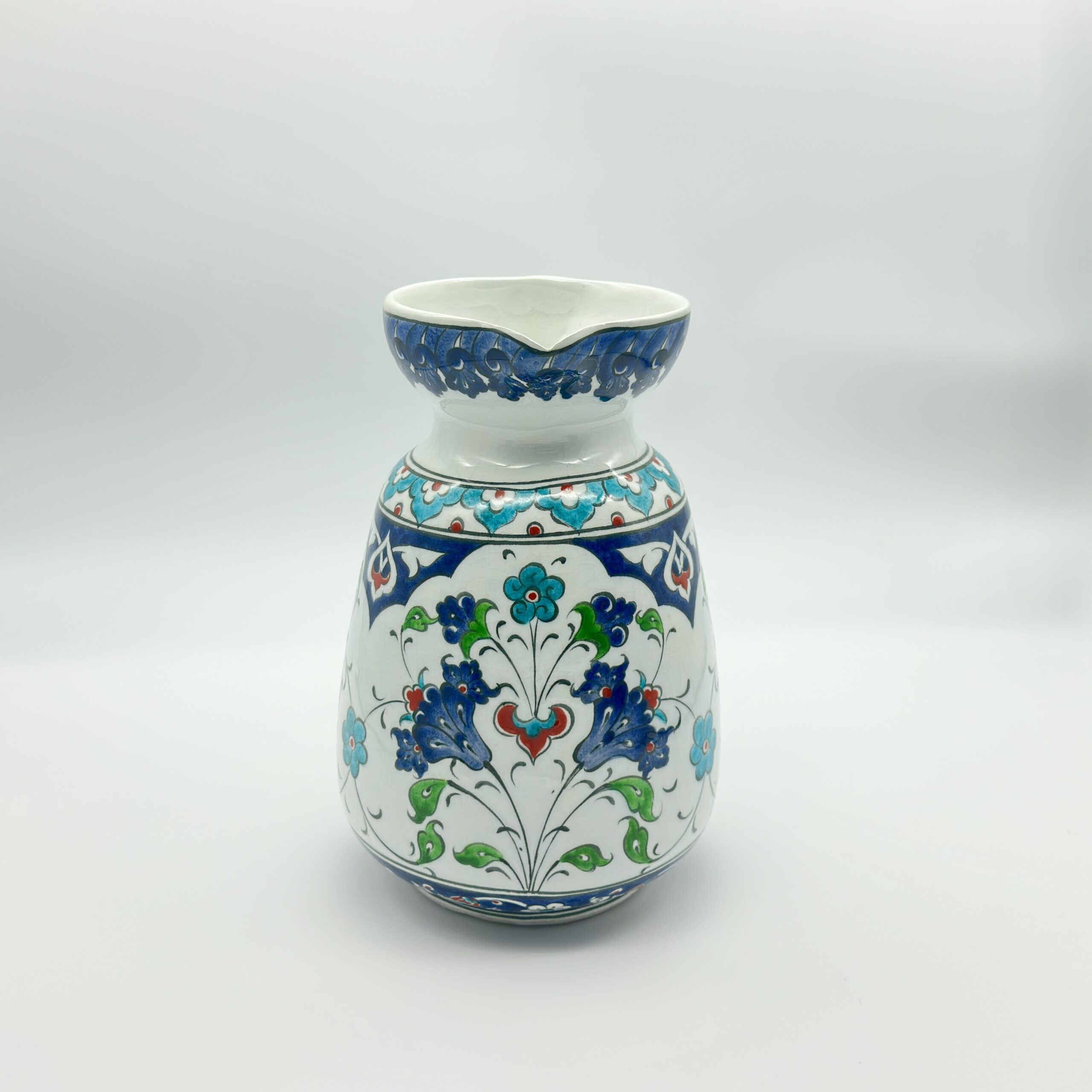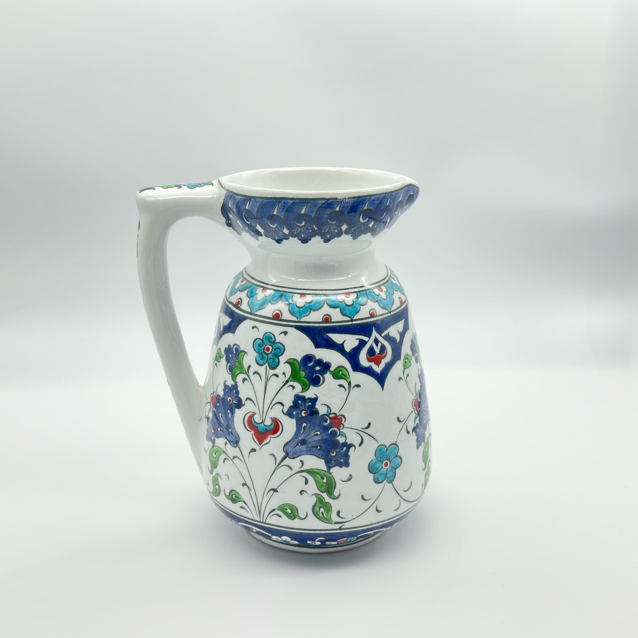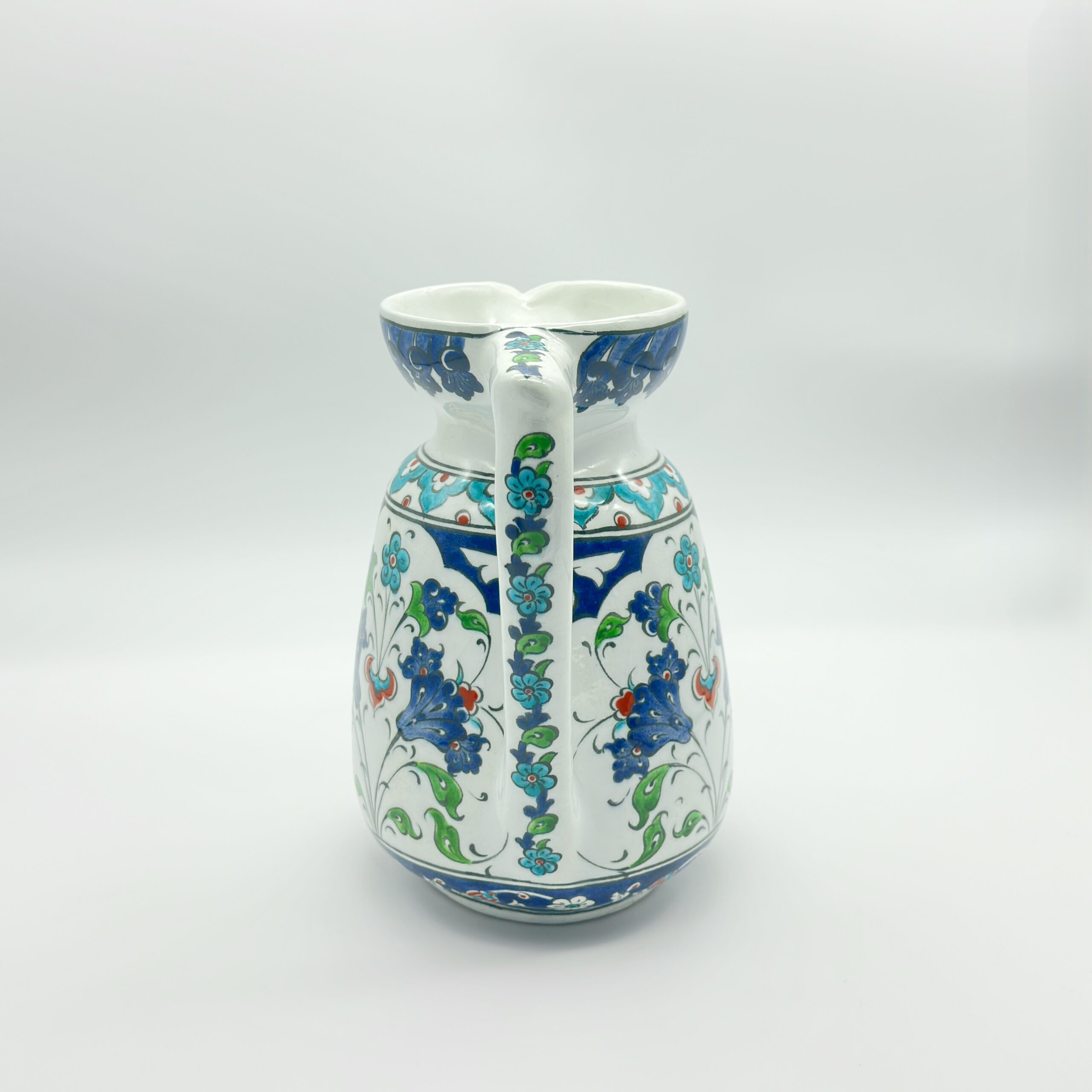 ⚠️ Uniqueness Guarantee: The floral motifs are painted by hand, so the exact arrangement of the bouquet and the brushwork on the arches will vary slightly on every pitcher. This ensures that your piece is a one of a kind original.