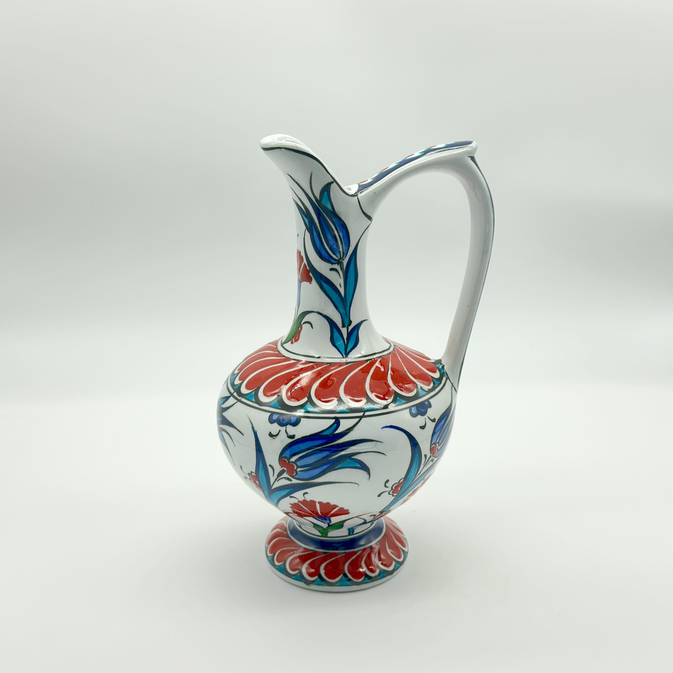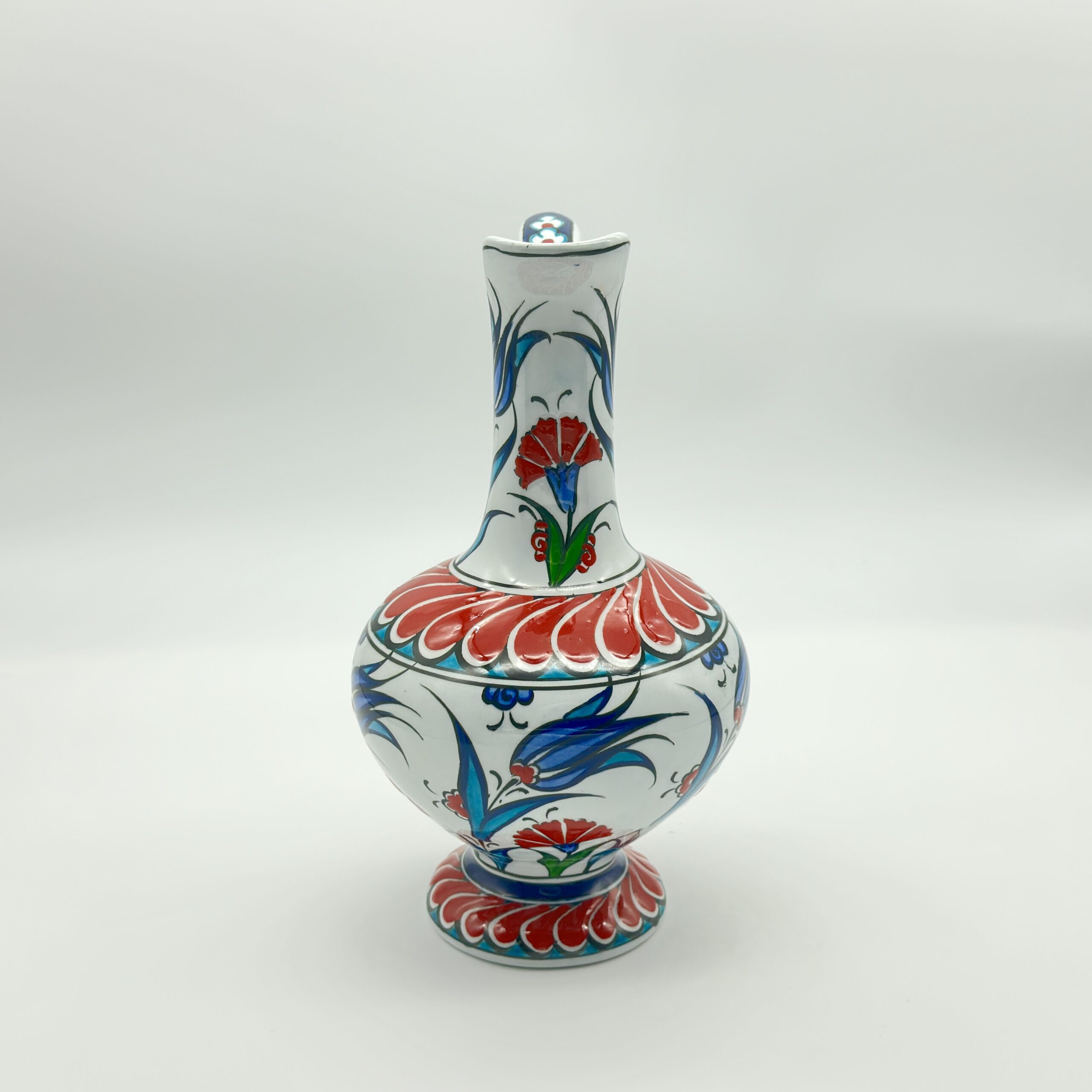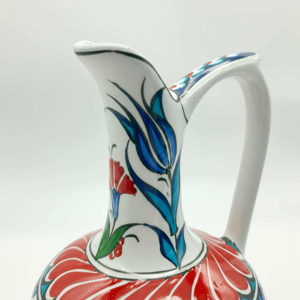 Handmade Ceramic Pitcher Vase (20cm) Traditional Turkish Carnation Pattern with Handle – Decorative Jug Art Decor