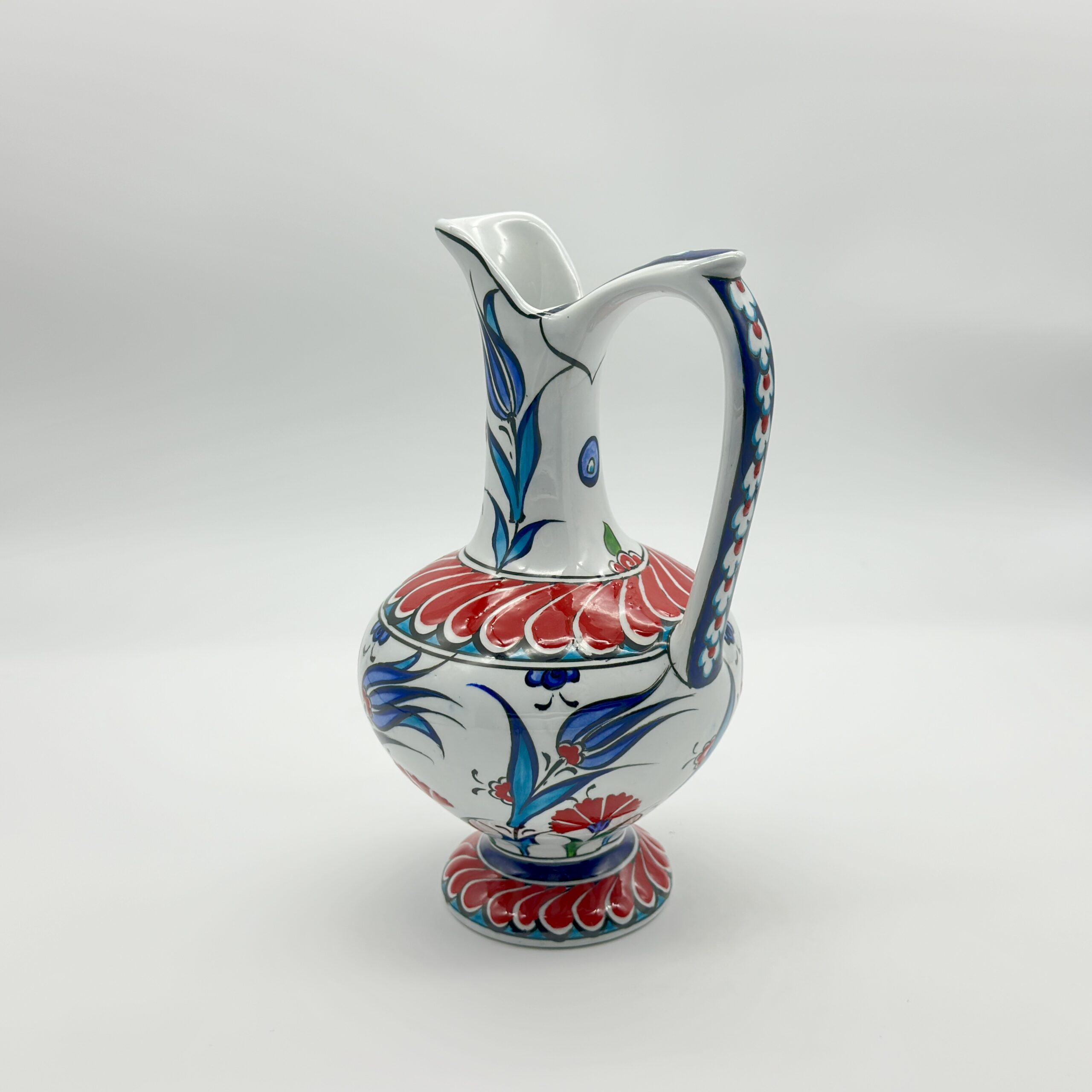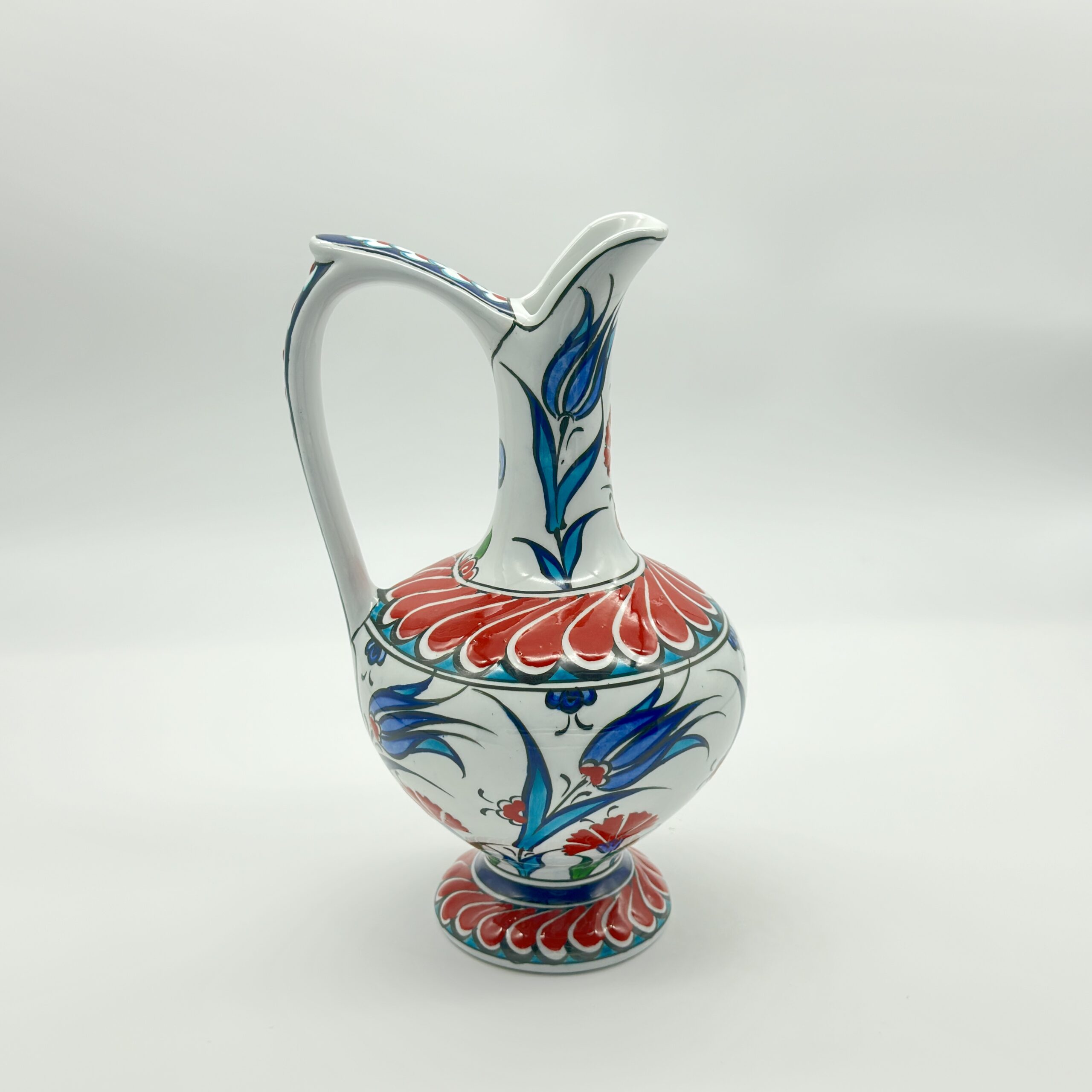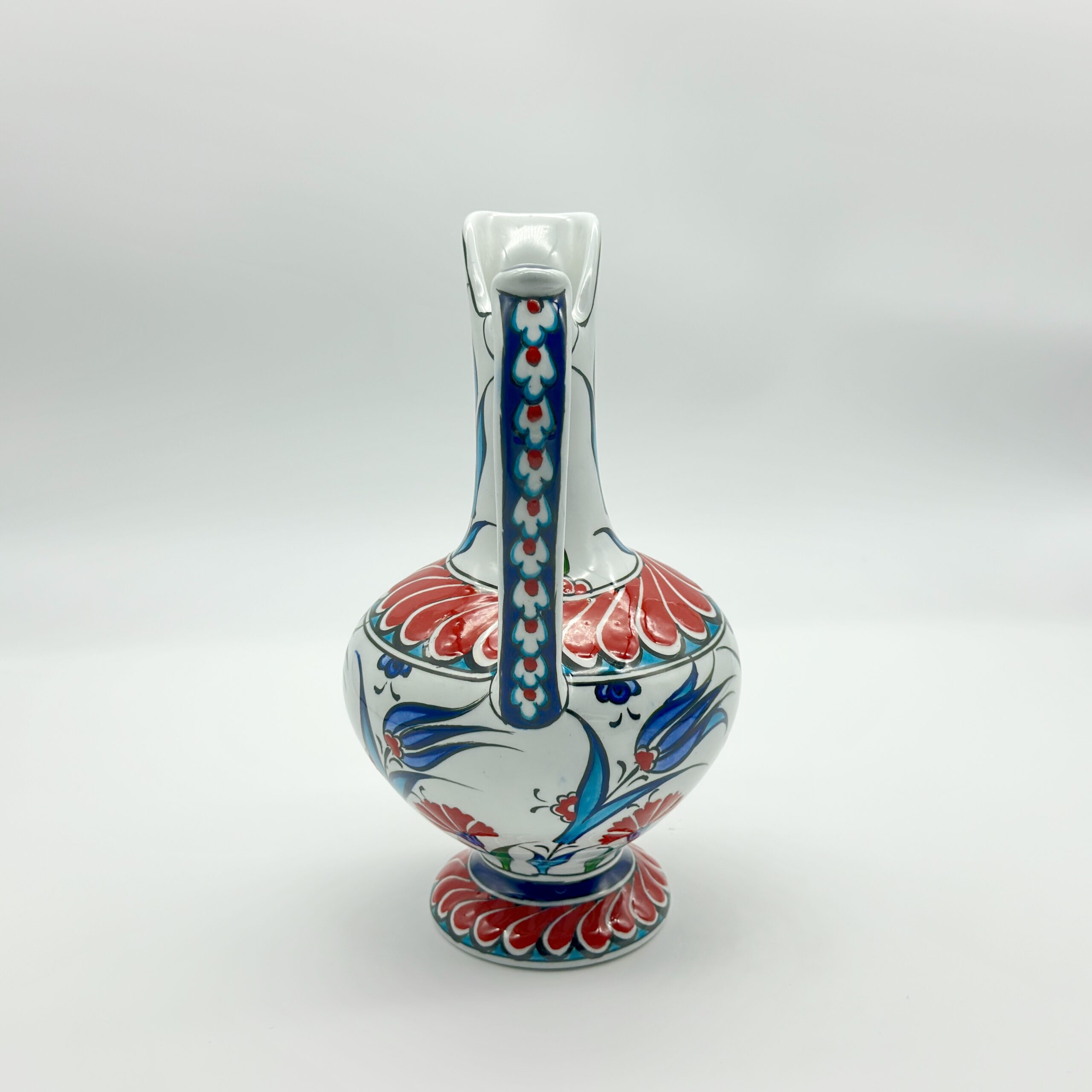 Handmade Ceramic Pitcher Vase (20cm) Traditional Turkish Carnation Pattern with Handle – Decorative Jug Art Decor