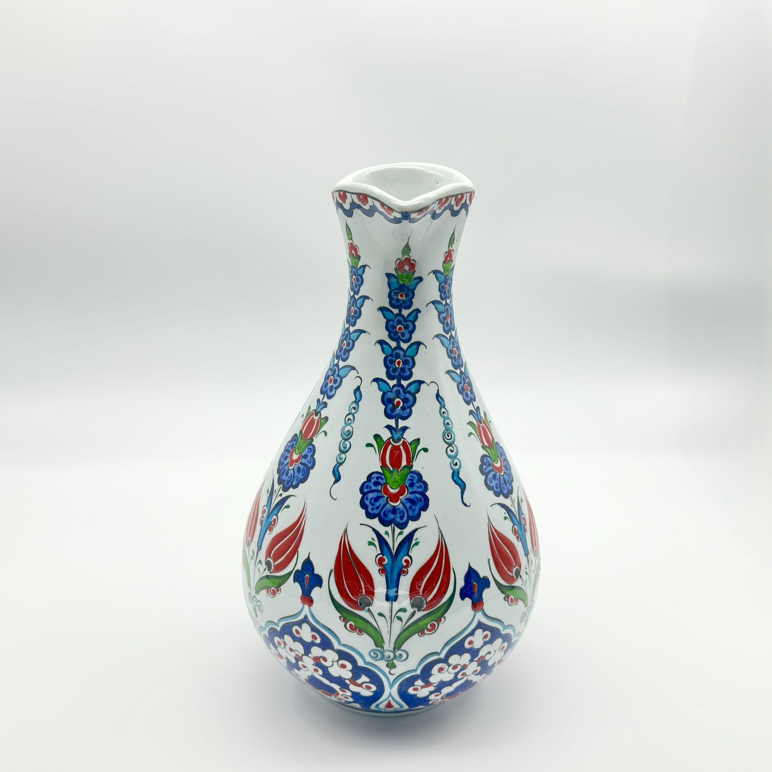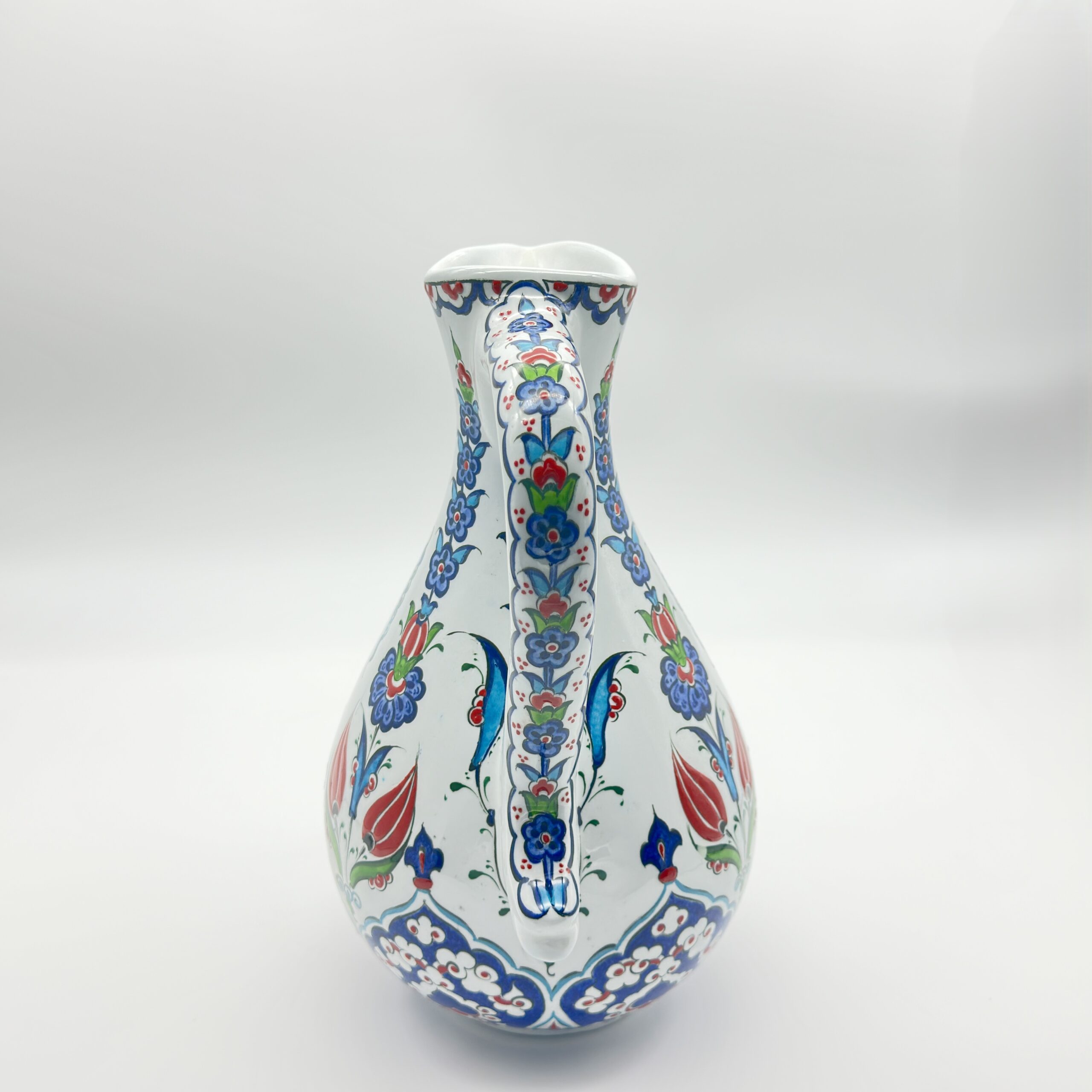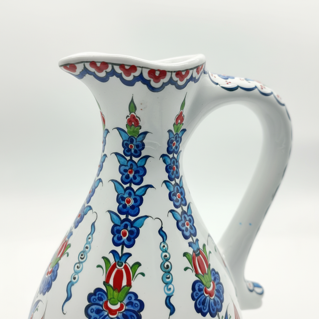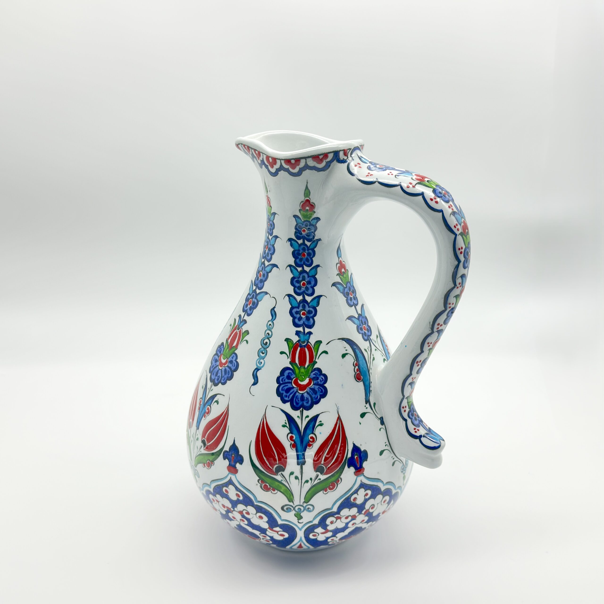 Handmade Ceramic Pitcher Vase (20cm) Traditional Turkish Carnation Pattern with Handle – Decorative Jug Art Decor