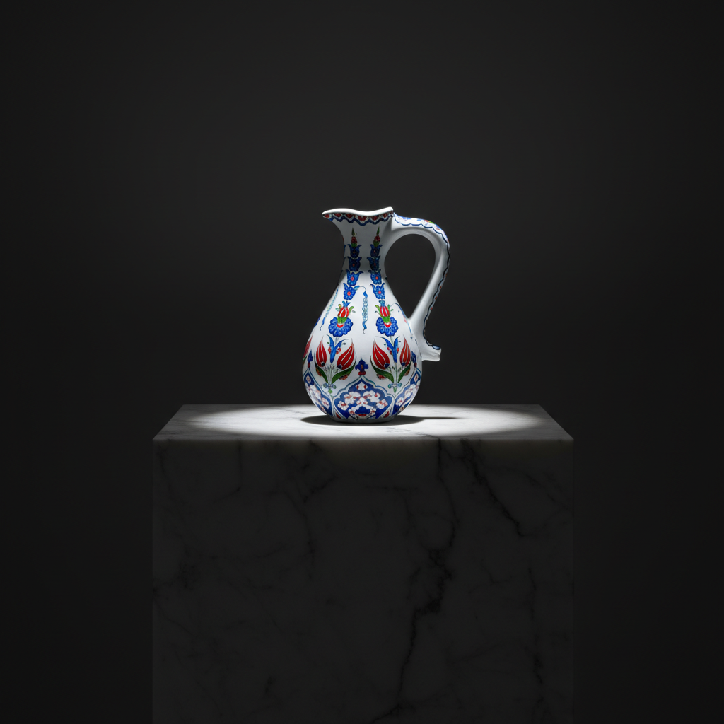 This Handmade Ceramic Pitcher is a study in vertical grace. Standing at 25 cm, its Slender Form is inspired by the elegant water ewers used in Ottoman daily life, reimagined here as a sophisticated work of art.