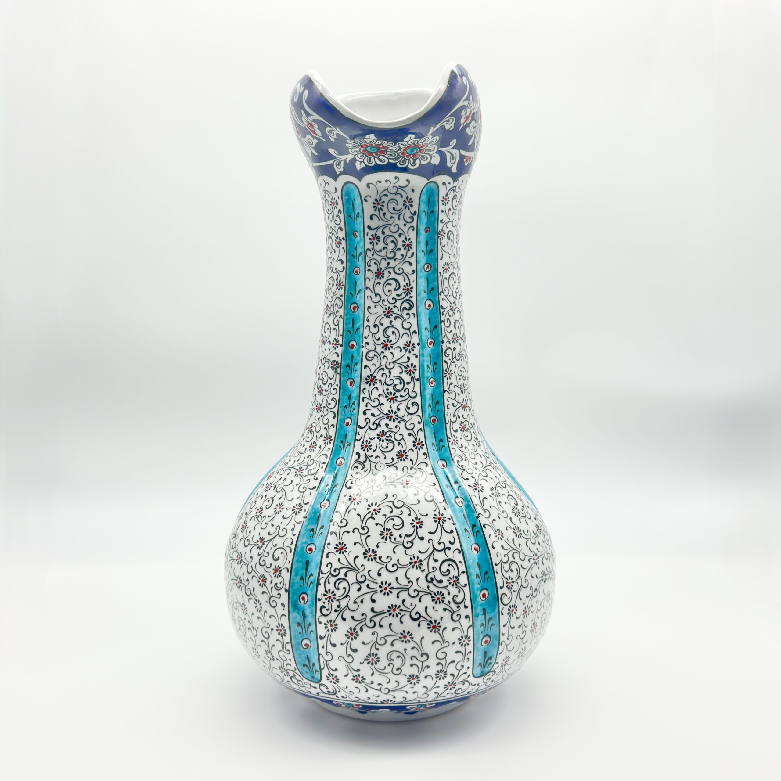 Handmade Ceramic Grand Vase (50cm) Traditional Iznik Blue & White Palace Design – Monumental Centerpiece / Floor Vase