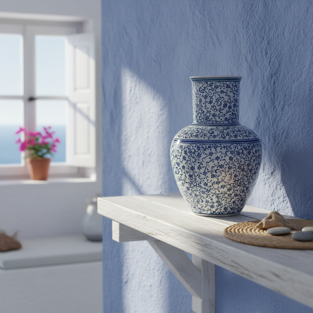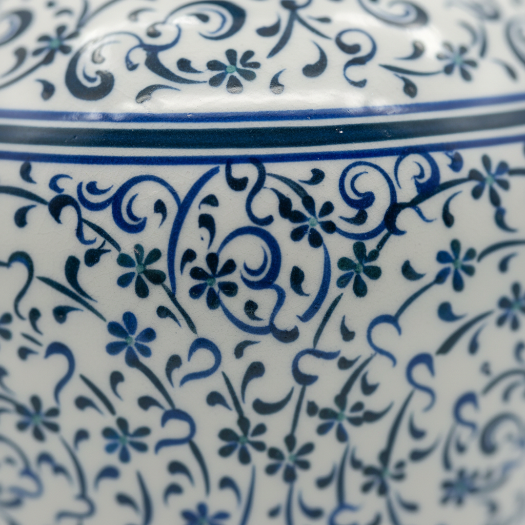 This Handmade Ceramic Vase is a masterpiece of linear elegance. Standing at 20 cm, it bears the distinct “Golden Horn” (Halic) pattern, a style that was born in the 16th century and remains one of the most respected forms of Ottoman ceramic art.