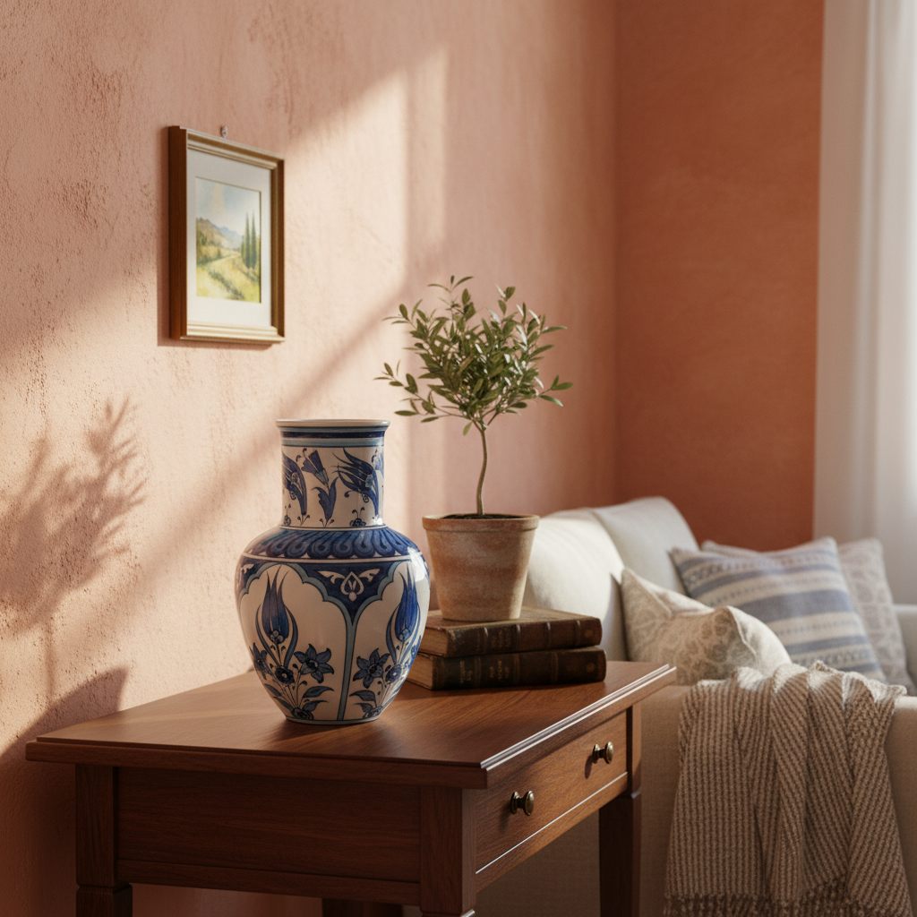 Handmade Ceramic Pitcher Vase (20cm) Traditional Turkish Carnation Pattern with Handle – Decorative Jug Art Decor