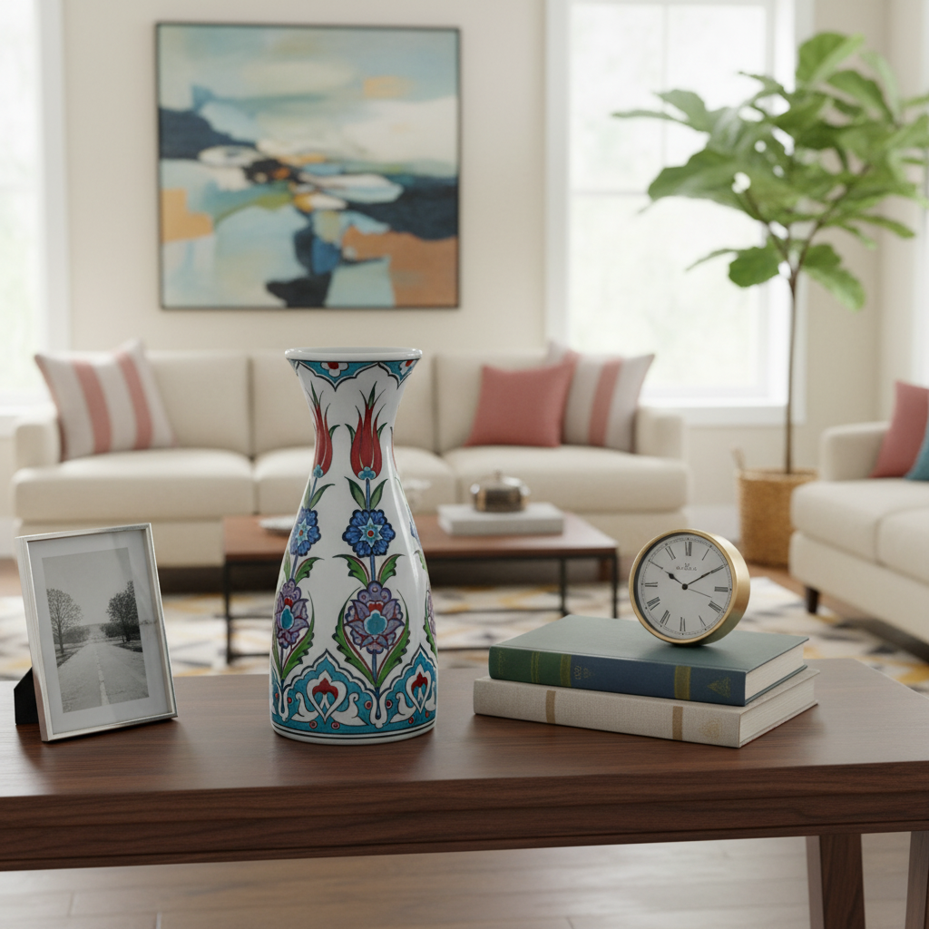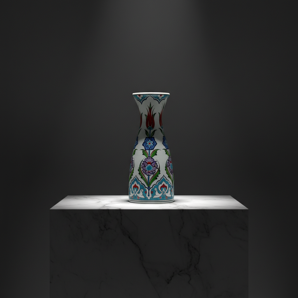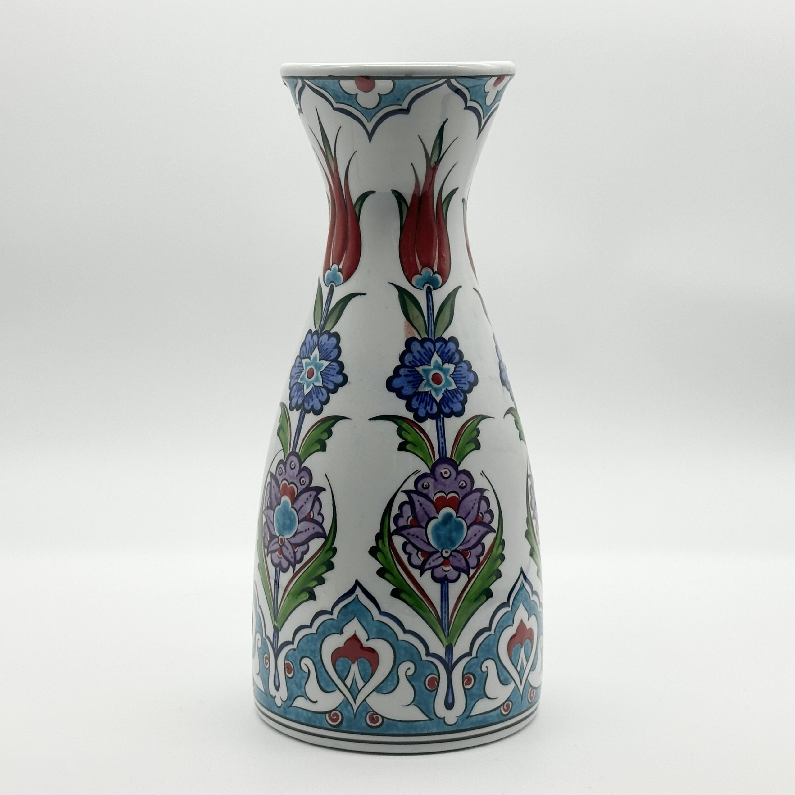 Handmade Ceramic Pitcher Vase (20cm) Traditional Turkish Carnation Pattern with Handle – Decorative Jug Art Decor