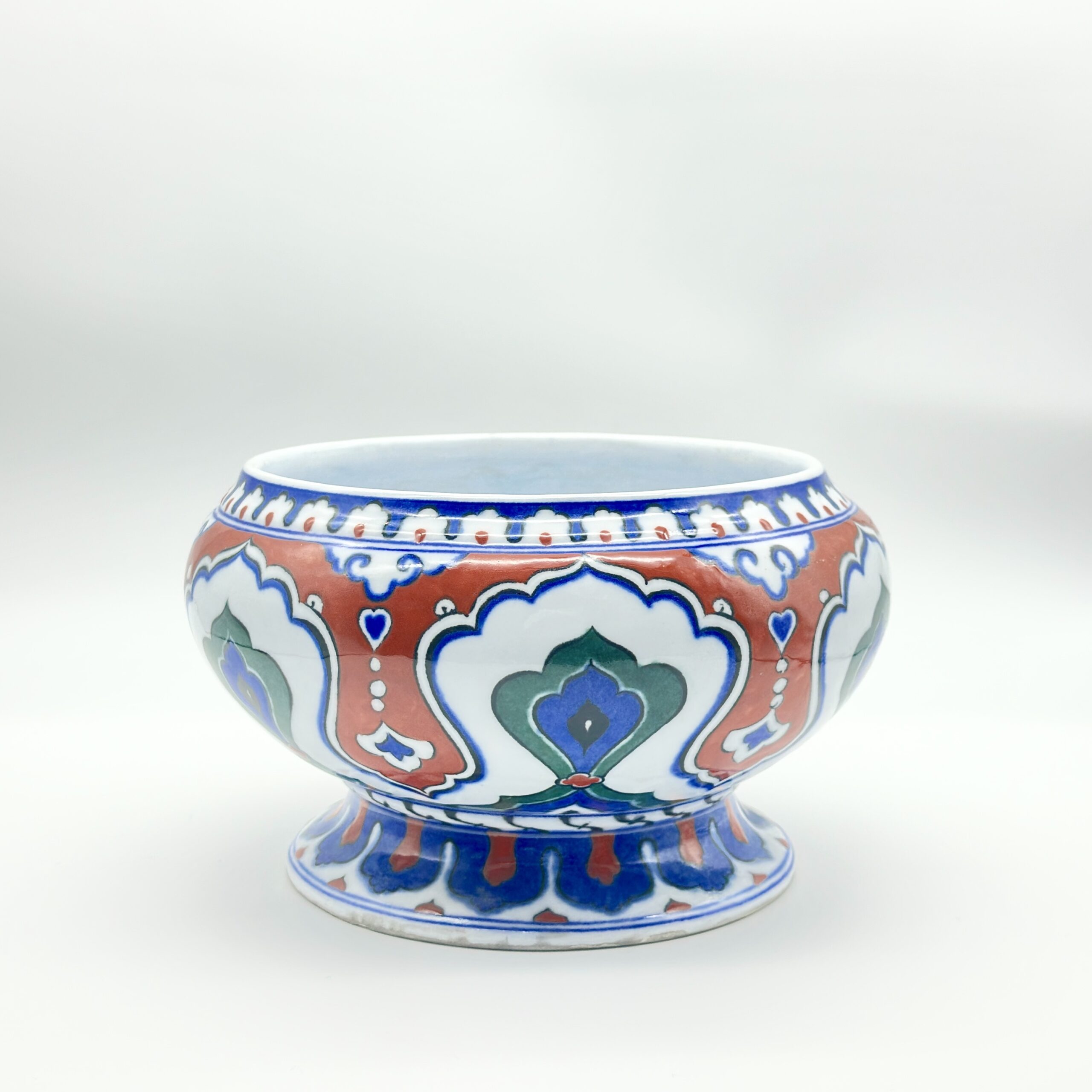 The Art of Quartz: True Iznik pottery is defined by its quartz content. While visual replicas exist in standard ceramic, this piece honors the scientific authenticity of the original. The high-quartz body requires firing at extremely specific temperatures, a risky and labor-intensive process that results in a surface reminiscent of semi-precious stones.