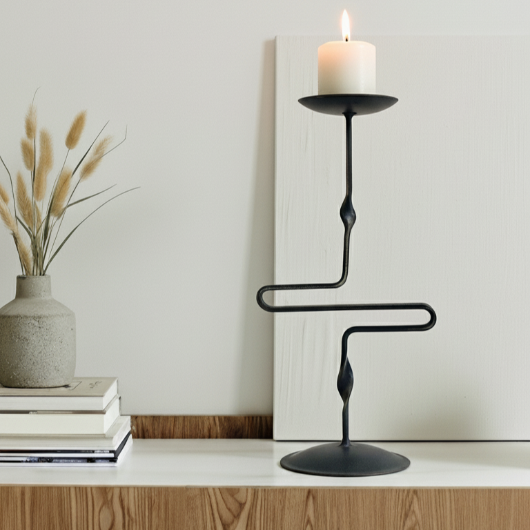 Cadence Candlestick | Handcrafted Curved Metal Candle Holder for Artistic Decor