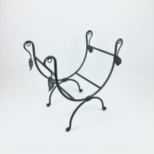 Original price was: $533,00.$399,00Current price is: $399,00.This hand-forged iron log holder (29x50x51cm) features a graceful U-shaped cradle, decorative leaf finials, and a warm antique copper finish.